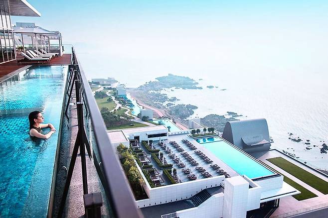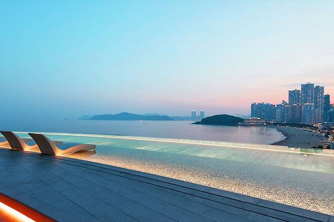 해운대 달맞이길에 위치한 시그니엘 부산은 해운대 전망을 감상할 수 있는 인피니티 풀을 보유하고 있습니다.