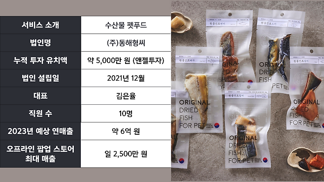 2. '수산물 펫푸드'라는 특색 있는 제품을 판매하고 있대요.