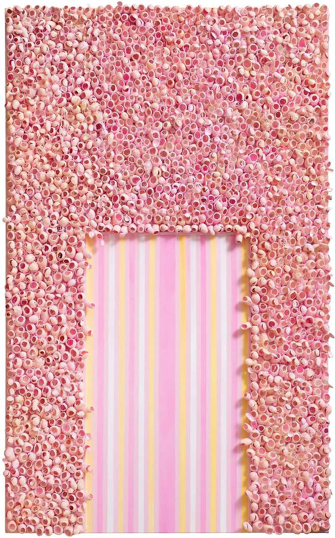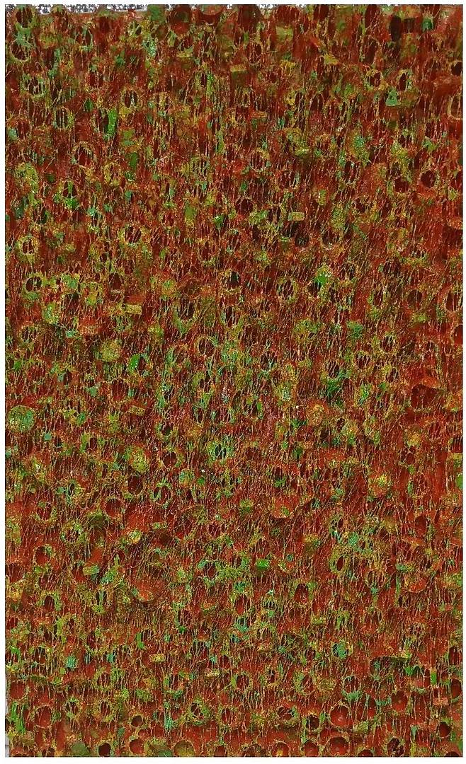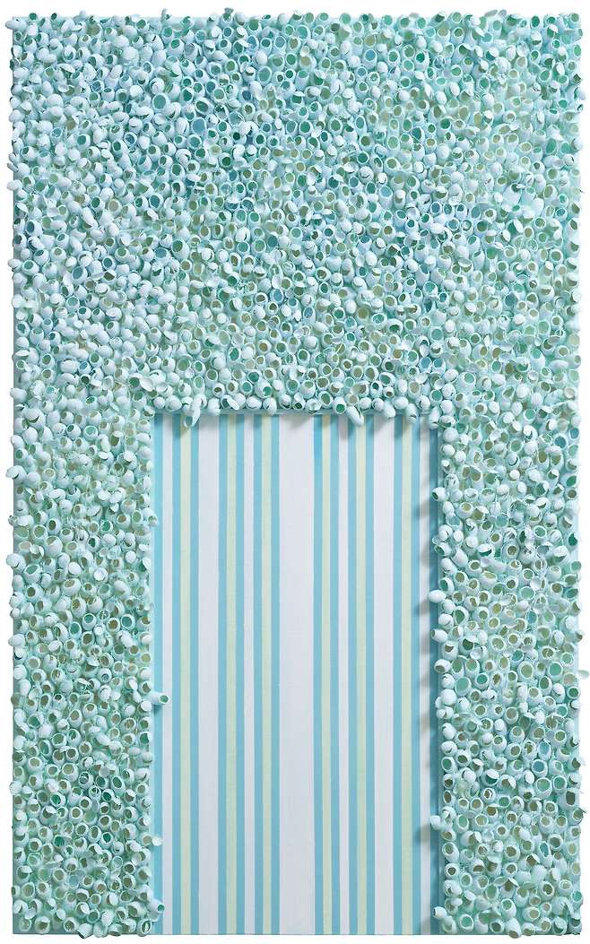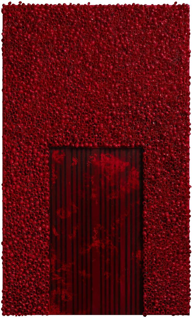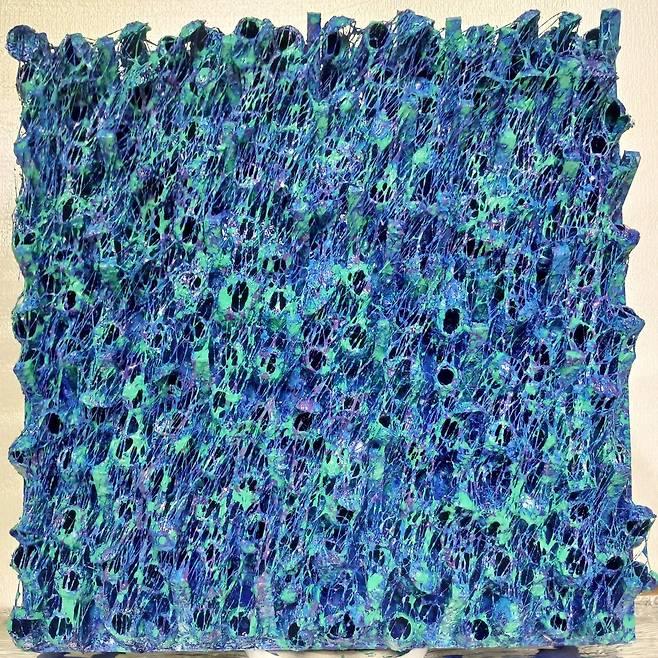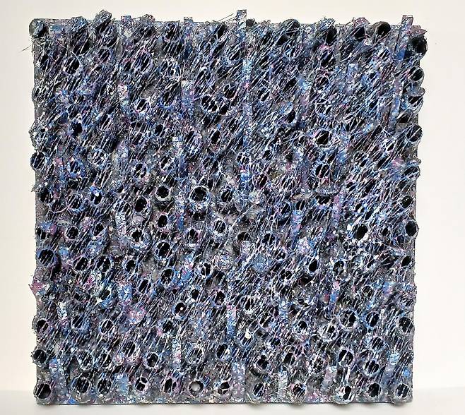 실제 누에고치를 오브제로 사용하여 캔버스에 누에고치를 콜라주 후 와이어 브러쉬로 수천번 긁어내어 실을 뽑아 올리는 연속과 반복적인 작업으로 수행과 진정성에 심도를 높였다.