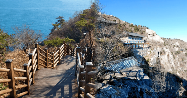 보리암은 남해 금산 정상에 자리한 사찰로, 남해바다와 금산의 풍광이 어우러진 웅장한 전경을 자랑합니다. 이곳은 원효대사가 관음보살을 만나 세운 것으로 전해지며, 소원을 빌면 이루어진다는 전설로 많은 이들이 찾는 명소이기도 합니다.