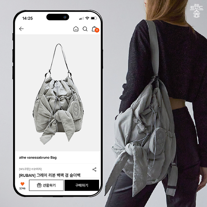 아떼 바네사브루노 르봉 그레이 리본 백팩 겸 숄더백