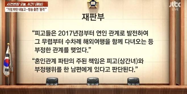 JTBC가 소개한 제보자의 2022년 이혼 소송 당시 판결문을 보면, 문제가 된 당사자들은 2017년부터 연인 관계로 발전했다고 하는데요.