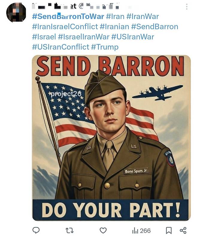 “배런을 전쟁터로”…트럼프 아들 입대 촉구 SNS 확산
