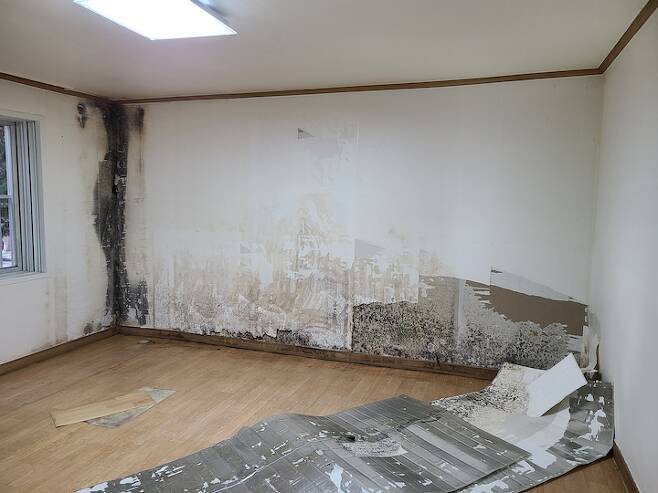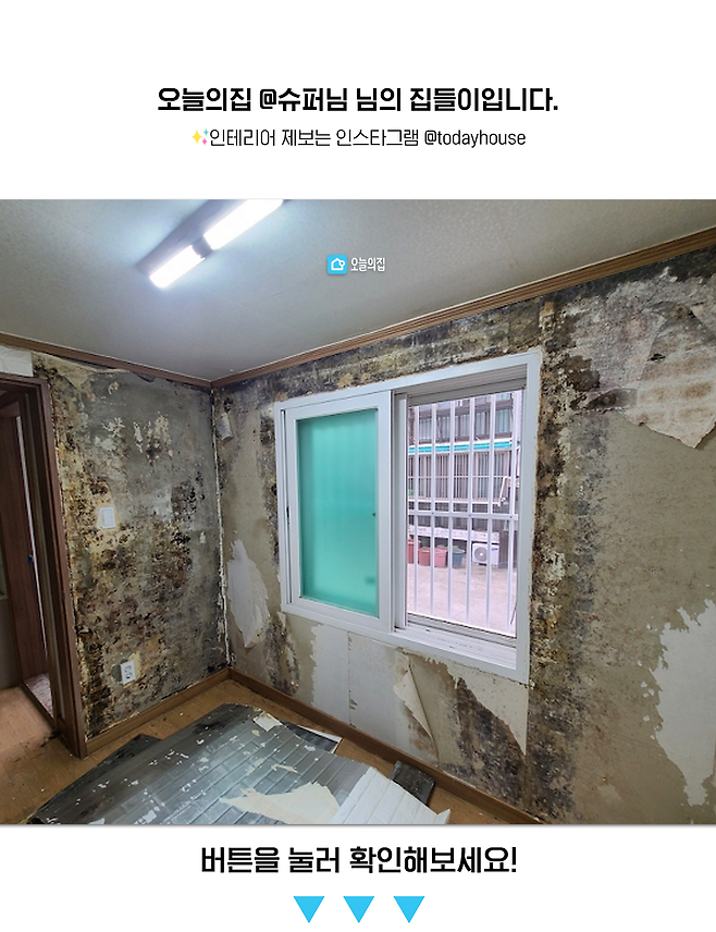 그리고 가장 큰 문제 중의 하나는 집에 누수가 몇 번이나 되었다고 합니다. 그래서 기존에 있던 벽지를 뜯어내니... 정말 경악을 금치 못했어요 ㅠㅠㅠㅠㅠ 매일매일 퇴근하고 닦고 청소하고 약 처리하는 것의 반복이었습니다. (물 새는 거.. 이거 아직도 완벽하게 잡지 못해서 계속 수리하고 체크하고 있는 중이에요)