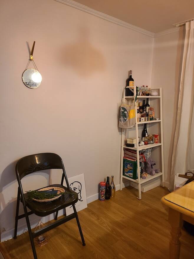 거실 겸 다이닝룸의 반대쪽이에요. 제대로 된 술창고를 새로 구매하고 싶은데, 아직은 마땅한 수납장을 찾지 못해서 현재로는 이케아 철제 선반을 계속 사용 중이랍니다. 추후에 교체되면 또 온라인 집들이하러 올게요 :)