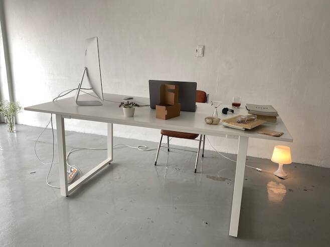 요 사진은 사진일을 하는 동생의 작업실 겸 스튜디오 공간 사진인데 이 공간에서 사용했던 책상을 선물받았답니다 :)