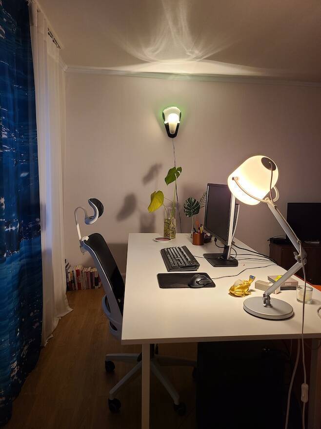 그리고 나만을 위한 공간인 작업실에 있는 책상은 이사 오면서 친동생이 선물해 준 작업 책상이에요. 사실 선물이라기보다는... 제가 반강제로 달라고 조르고 졸라 얻어낸 가구이지요!! ㅋㅋㅋ 생각보다 사이즈가 커서 고민이 살짝 되긴 했지만 배치하고 나서보니 오히려 공간의 느낌을 확실히 자리 잡아줘서 생각했던 것보다 더 괜찮은 구조의 작업실이 된 것 같아 만족스러웠답니다 :)