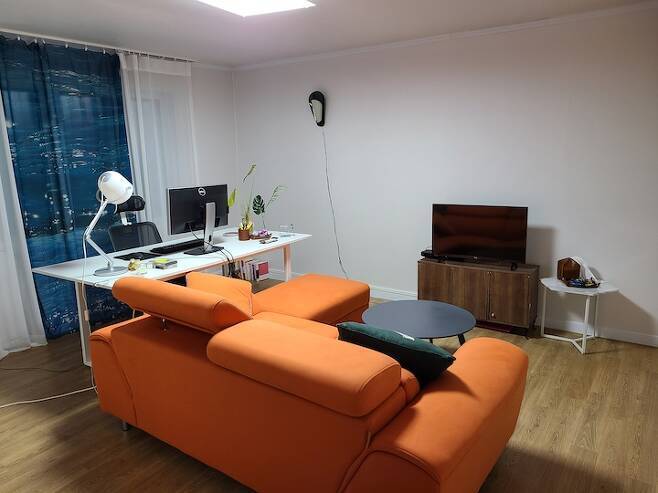 개인적인 생각으로 쇼파는 거실, 휴식공간의 가장 큰 이미지를 차지한다고도 생각이 들고 쇼파의 컬러에 따라 집안 분위기도 달라질 수 있을 거란 생각에 과감히 주황색 쇼파를 결정!! 아주아주 탁월한 선택이라고 생각합니다. 사길 제일 잘했다고 생각하는 가구에요!!!! ㅋㅋㅋ