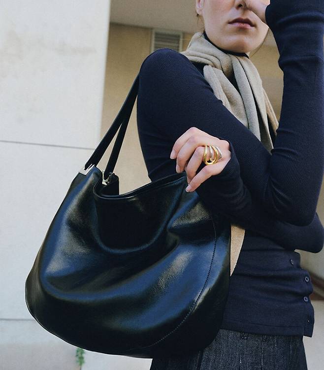 특히 눈길을 끈 건 루에브르의 Bonheur 숄더백.부드럽게 흐르는 레더 쉐입이 코튼 자켓의 드라이한 질감과 묘한 대비를 이루며 소재의 결이 살아났어요