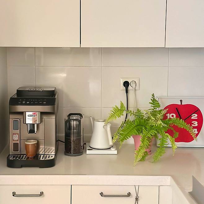 개인적으로 주방은 '위생'이 가장 중요하다고 생각해서 깨끗하고 단정해 보이도록 신경 썼어요. 주방의 메인 컬러가 화이트가 된 것도 이러한 이유에서랍니다. 또 주방은 물과 불이 가까운 공간이라 싱크대가 번잡한 게 싫어서 저희 집의 소형 가전은 모두 거실 베란다에 두었는데요. 베란다는 글의 하단부에서 확인해 보실 수 있답니다.