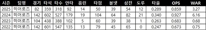 | ▲ 키움 송성문의 주요 타격기록(출처: 야구기록실 kbreport) |
