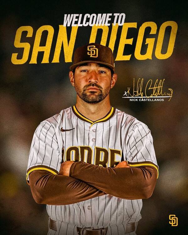 샌디에이고 구단은 16일(이하 한국시각) "외야수 닉 카스테야노스와 1년 계약을 맺었다"라고 알렸다.
