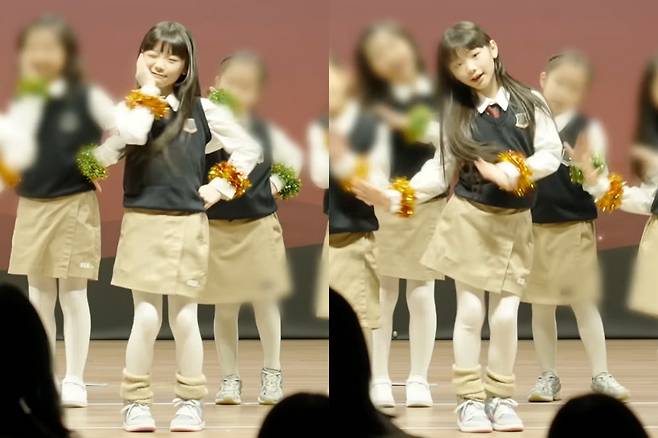 단정한 교복 차림에도 불구하고 무대 위에서 보여준 안정적인 율동과 당당한 표정에서는 아이돌 출신 부모의 끼가 그대로 느껴졌습니다.