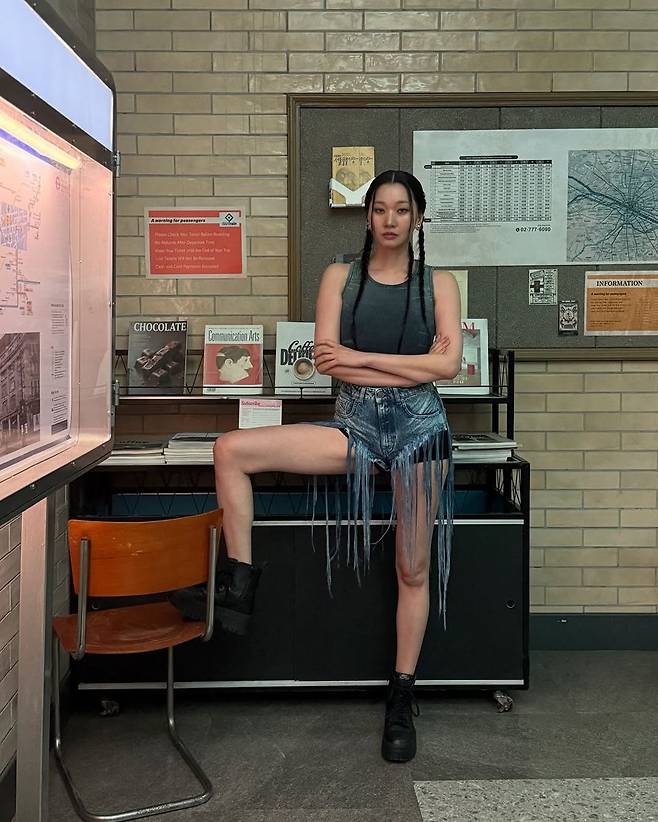 #장윤주 #장윤주패션 #장윤주오버핏 #데님쇼츠 #스포티룩 #오버핏코디 #젠더리스룩 #프린지쇼츠 #브라탑룩 #Y2K패션 #모델코디 #스타패션