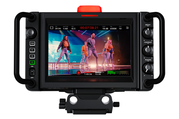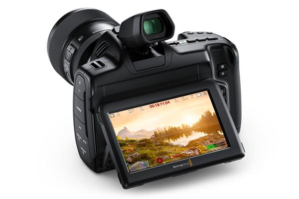 후면에는 5인치 FHD(1920x1080) HDR 터치스크린 디스플레이가 탑재됐으며 상하 틸트 조작을 지원하고 최대 1500니트 밝기로 야외에서도 화면을 보는데 어려움이 없다. 또한 BMPCC 6K 시리즈처럼 상단에 별도 판매되는 전자식 뷰파인더(EVF)를 부착하면 1280x960 해상도 OLED로 야외 촬영 및 핸드헬드 촬영이 더욱 정확하고 쉬워진다.