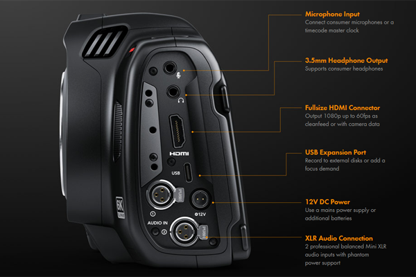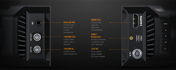 제품 크기는 작지만 풀사이즈의 스튜디오 카메라가 지원하는 모든 기능을 갖췄으며, 최대 2160p60의 HD/UHD 촬영에 필요한 12G-SDI를 탑재했다. 또한 SDI 및 HDMI 연결을 통해 내장 컬러 커렉터와 렌즈를 제어하고 고품질 12비트 BRAW 포맷 영상을 USB 디스크에 녹화할 수도 있다. USB-C 확장 포트는 외장 디스크 녹화 외에도 USB-C 이더뎃 어댑터를 연결해 네트워크를 통한 카메라 제어도 지원한다.