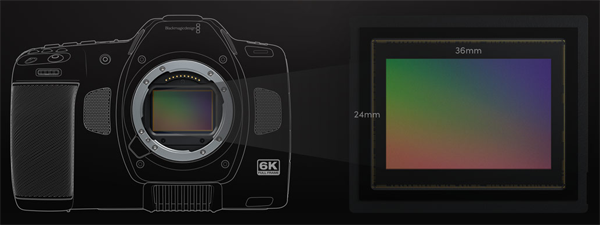 BMCC 6K는 6048x4032 네이티브 해상도를 제공하는 풀프레임 센서를 탑재했는데, 이는 Super 35 센서보다 거의 3배나 큰 사양이며 낮은 피사계 심도 및 크롭 없는 아나모픽 렌즈 촬영이 가능하다. 13스탑의 다이내믹 레인지와 최대 25600의 듀얼 네이티브 ISO를 지원하며, 최대 36fps의 풀 센서 해상도 또는 120fps의 윈도우 모드로도 촬영할 수 있다.