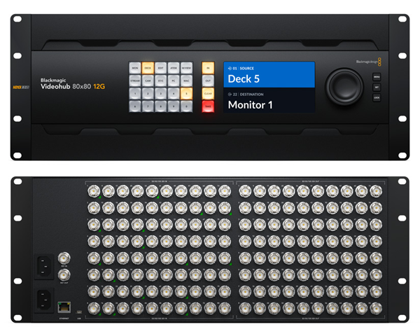 블랙매직디자인은 새로운 스튜디오 카메라와 함께 대형 80x80 12G-SDI 라우터인 블랙매직 비디오허브 80x80 12G (Blackmagic Videohub 80x80 12G)를 발표했다.