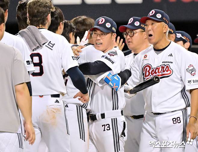 조 대행은 "처음엔 어떤 방향으로 가야 할지 계산조차 버거웠다. 그런데 양의지를 중심으로 정수빈, 김재환, 제이크 케이브 같은 핵심 선수들이 중심을 잡아줬다. 덕분에 팀이 흔들리긴 해도 완전히 휘청이지 않았다. 그 과정에서 젊은 선수들이 조금씩 자리를 잡을 수 있었고, 선배들의 도움이 컸다"고 바라봤다.