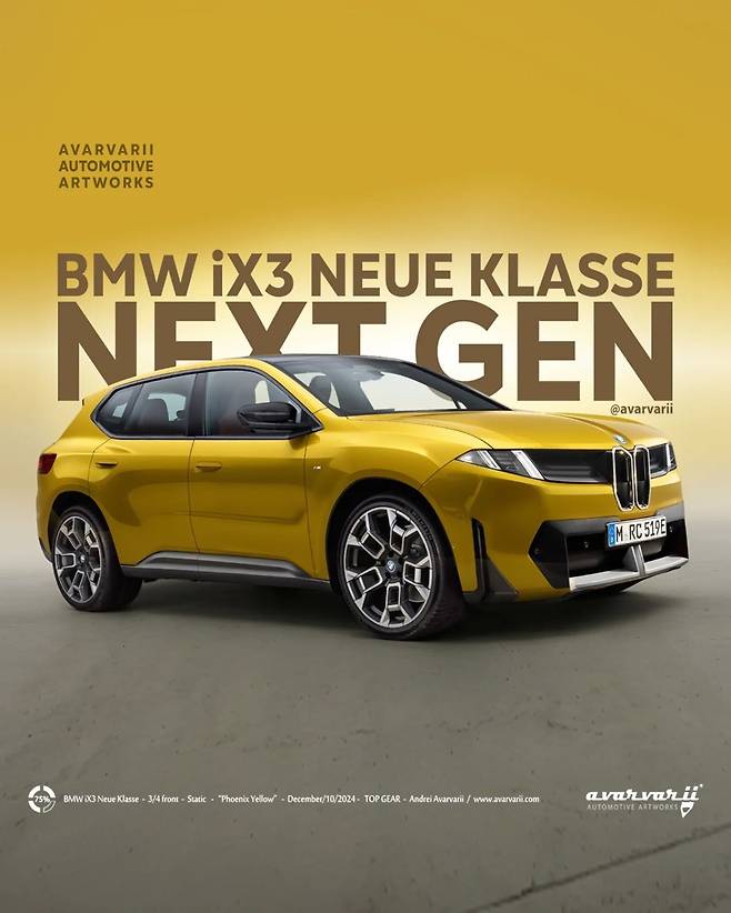 디지털 자동차 디자이너 아바르바리(Avarvarii)가 최근 공개한 iX3의 가상 렌더링 이미지에서는 노이어 클라쎄 특유의 디자인 요소들이 눈에 띈다.