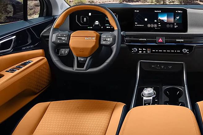 실내 역시 미래지향적인 요소가 가미된 모습이다. 스티어링 휠은 비대칭 구조로 재디자인됐으며, 기아의 최신 디자인 언어를 반영한 로고 배치가 눈에 띈다. 운전석부터 조수석까지 이어지는 대형 파노라믹 디스플레이는 시각적인 장치에 그치지 않고, 직관성과 몰입감을 높이는 구성으로 설계됐다.