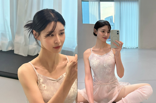 사랑스러우면서도 청순한 발레코어 룩은 그녀의 투명한 피부와 긴 팔다리를 더욱 돋보이게 하며, '인간 발레리나' 같은 자태를 완성했습니다.