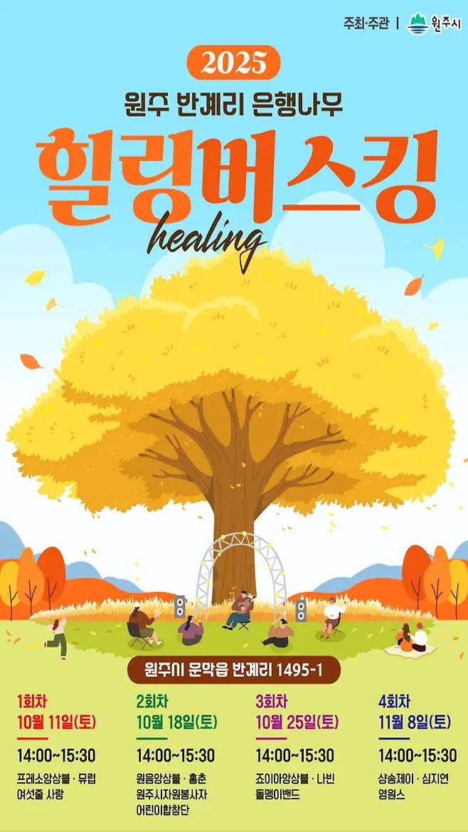 은행잎이 샛노랗게 물드는 그 순간, 은행나무 아래 울려 퍼지는 선율은 황금빛 가을 감성을 극대화시켜줄 것이다.