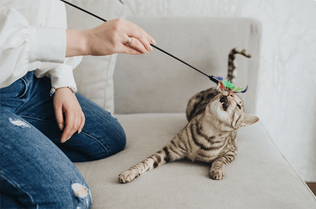고양이도 나이 들면 장난감에 대한 흥미가 떨어집니다만, 장수 고양이 중에는 젊은 고양이 못지않게 호기심 왕성하고 잘 노는 고양이가 많다고 합니다. 하루 1~2회 정도 회당 15분 정도 놀아주는 것만으로도 고양이는 만족하니, 규칙적인 놀이를 통해 고양이가 건강한 묘생을 누릴 수 있도록 합니다.