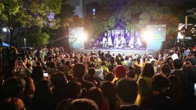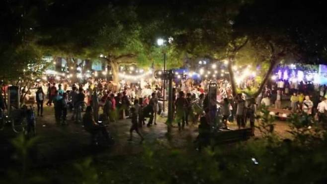 초여름 밤, 도심 속 공원에 울려 퍼지는 음악과 불빛, 그리고 자연의 향이 어우러지며 제주의 여름을 감성으로 물들인다.