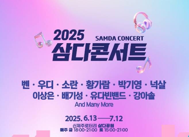 제주특별자치도와 제주관광공사는 올해로 11회를 맞는 ‘2025 삼다콘서트’를 6월 13일부터 7월 12일까지 매주 금요일과 토요일 저녁 제주시 연동 삼다공원에서 개최한다고 밝혔다.