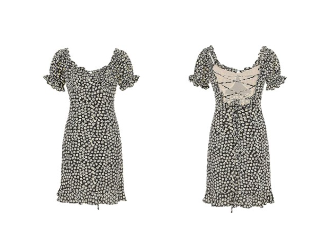 권나라는 블랙컬러 바탕에 플라워패턴이 그려진 원피스로 상큼발랄한 분위기를 자아냈다.
