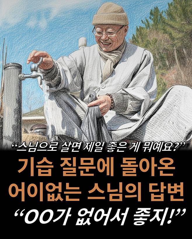 "스님으로 살면 제일 좋은 게 뭐예요?" 기습 질문에 돌아온 어이없는 스님의 답변