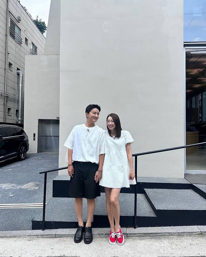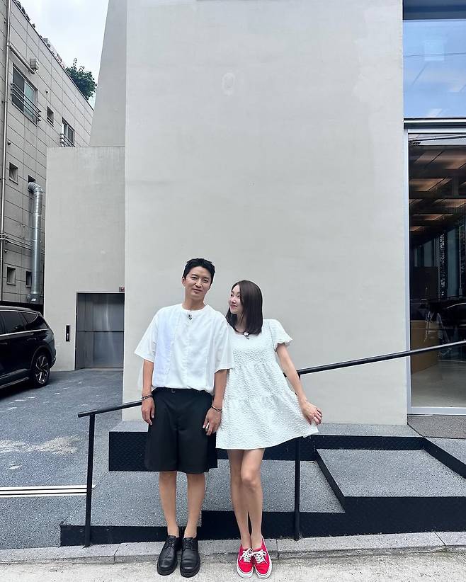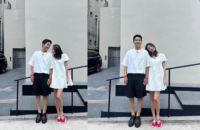 두 사람은 깔끔한 화이트 시밀러룩에 블랙 팬츠, 그리고 포인트로 소이현의 발끝에 더해진 핑크 운동화까지, 트렌디하면서도 사랑스러운 커플룩을 완성했다.