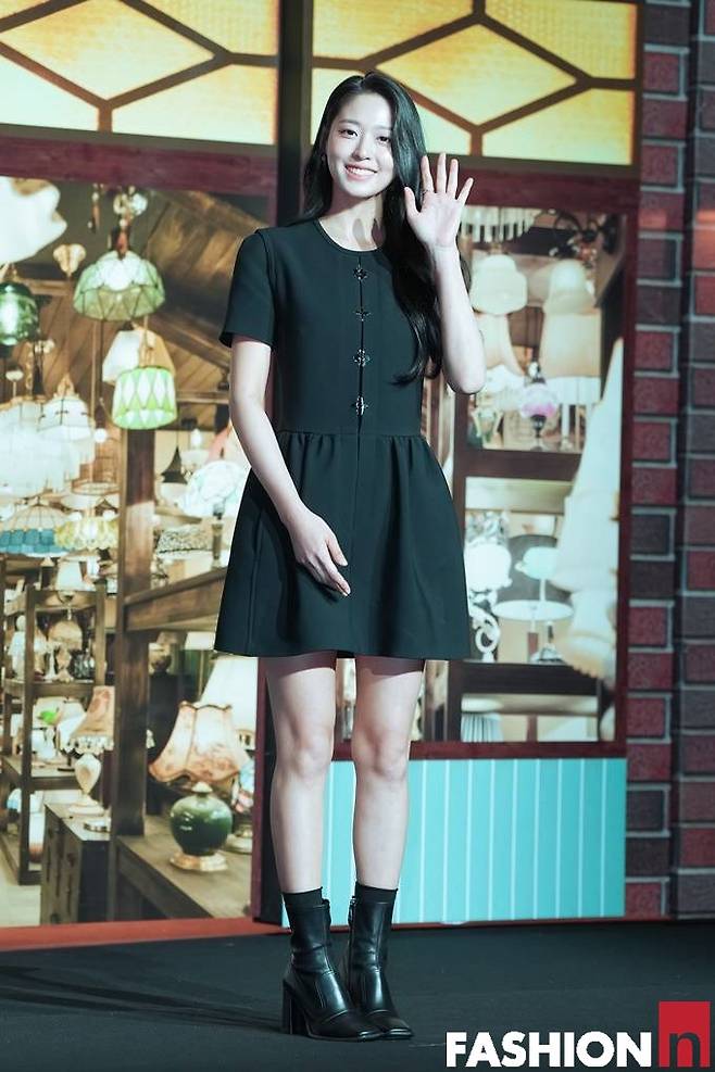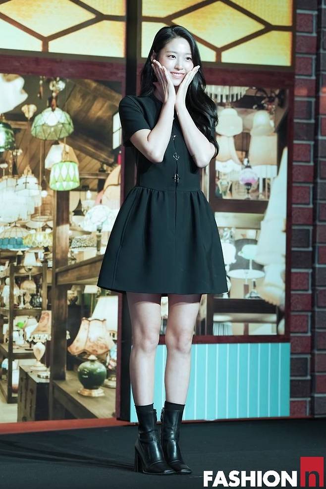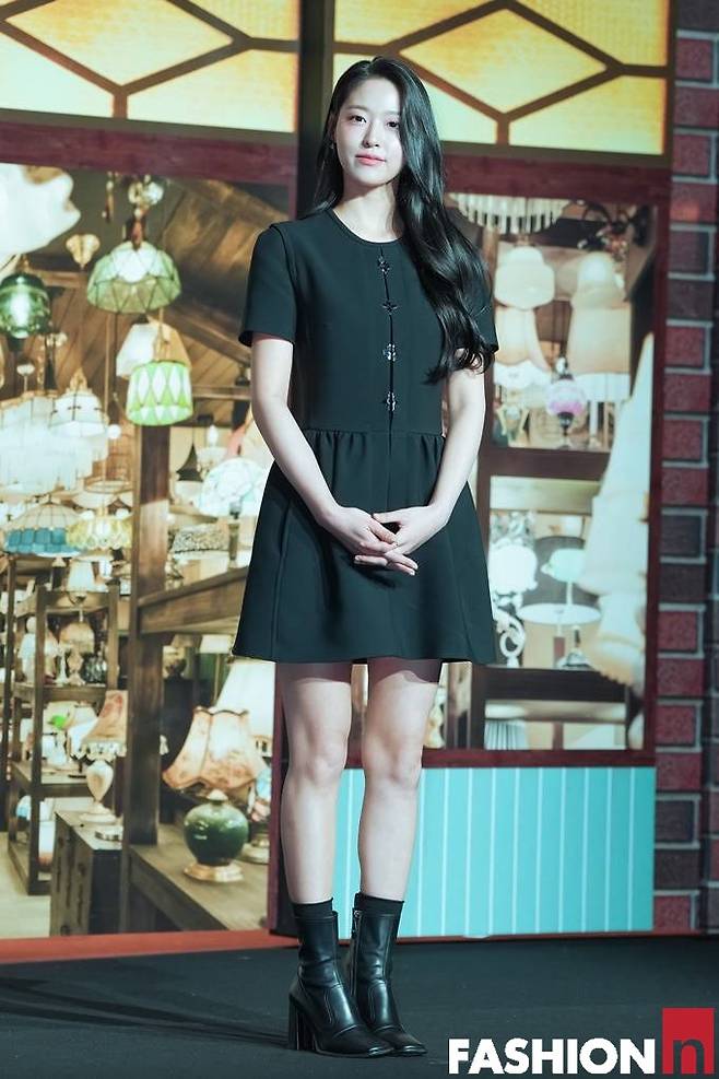 설현은 이날 복고풍의 러블리한 블랙 미니 원피스룩으로 9등신 비율의 완벽한 자태를 자랑했다.