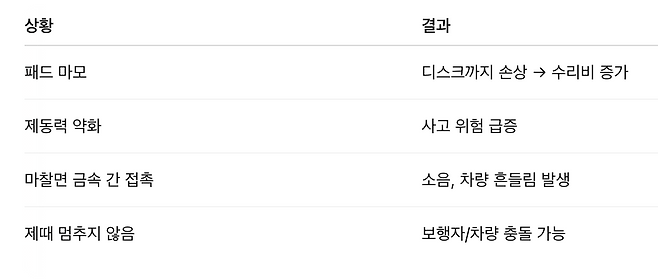 * 소리가 나거나 제동력이 약해졌다면 바로 점검 필요