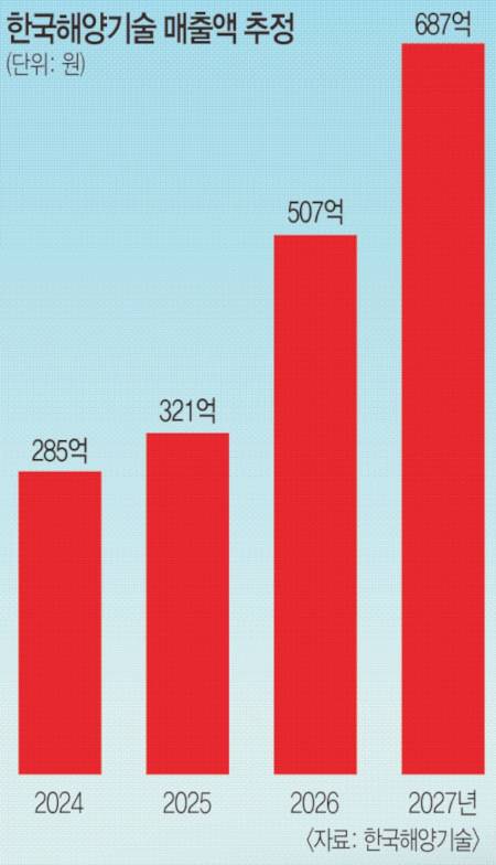 한국해양기술은 올해를 해상풍력 원년으로 보고 순풍에 올라타기 위한 투자를 계획하고 있다. 우선 해저케이블 포설선 및 운송선을 추가 확보할 예정이다. 한국해양기술은 지난해 285억원이었던 매출이 매년 34.5% 성장해 2027년 687억원에 달할 것으로 추산했다.