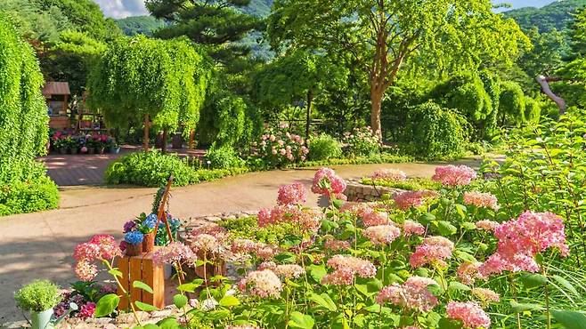 곤지암리조트에서 도보로 이동 가능한 화담숲의 ‘수국원’은 약 4,500㎡ 규모로 조성된 여름 정원이다.