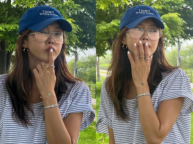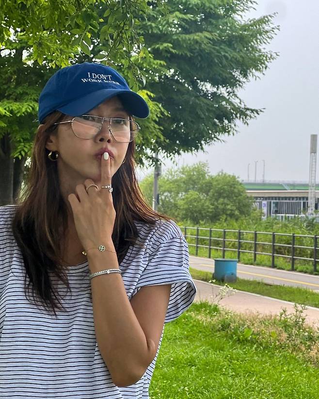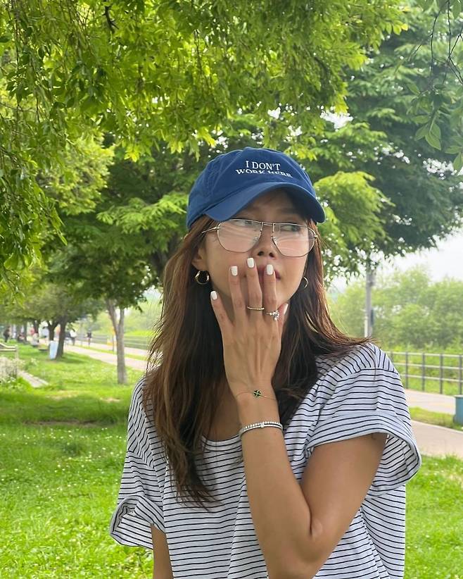 공원에 나온 채정안은 소매를 접어 올린 스트라이프 티셔츠에 모자를 쓰고 편안한 차림에 다채로운 액세서리로 멋을 냈다. 귀걸이, 팔찌, 반지, 안경 등으로 수수할 수 있는 패션에 포인트를 더했다. 태닝을 한 듯 까만 피부가 건강미와 함께 여름의 분위기를 더하고 있다.