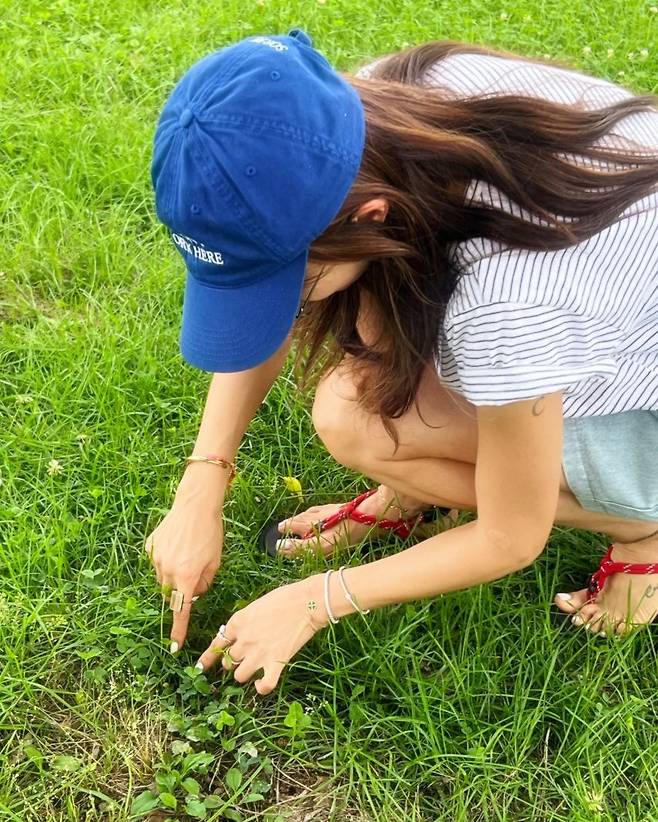 채정안은 11일 자신의 인스타그램에 "여름향기. 행운의 네잎크로버 여러분에게 드려요" 라는 글과 함께 여러 장의 사진을 게재했다. 채정안은 공원에서 네잎클로버를 찾고 있는 모습이다. 특히 일날 채정안이 착용한 팔찌에도 네잎클로버 장식이 달려 있는 것이 눈에 띈다.