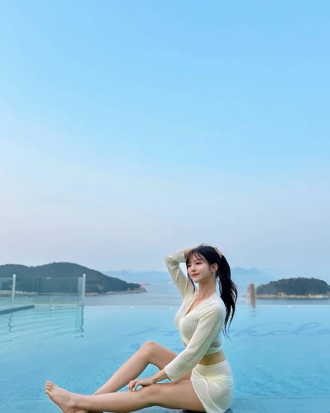 리조트 선베드 위에서 여유롭게 휴식을 취하는 모습, 인피니티풀 끝에 서서 하늘과 바다를 배경으로 포즈를 취하는 모습 등은 더 이상 경기장의 발랄한 치어리더가 아닌, 자신만의 콘텐츠를 만들어내는 프로페셔널한 모델의 모습 그 자체였습니다.