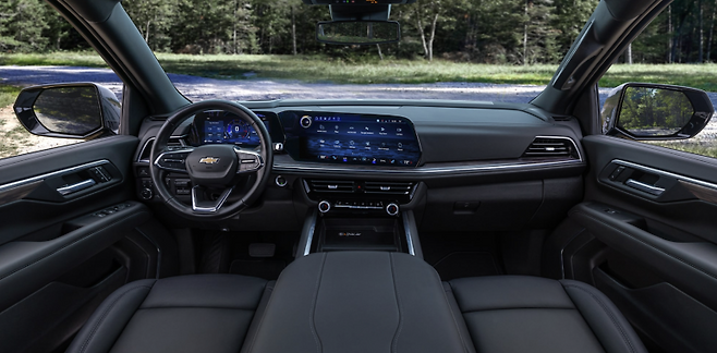 이번 2025 타호 페이스리프트 모델은 기존 이미지에 최신 감성을 더한 디자인이 특징이다. 특히 헤드램프 위치를 아래로 이동시키고, 상단에는 새로운 LED 주간주행등(DRL)을 추가해 인상이 훨씬 세련됐다. 그릴 디자인도 소폭 손보면서 과거보다 정제된 이미지를 갖췄다. 실내는 11인치 디지털 계기판과 17.7인치 대형 터치 디스플레이가 눈길을 끈다. 칼럼식 변속기도 그대로 유지되지만, 전체 인테리어 분위기는 한층 현대적이다.