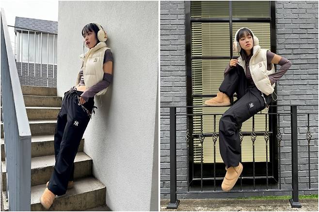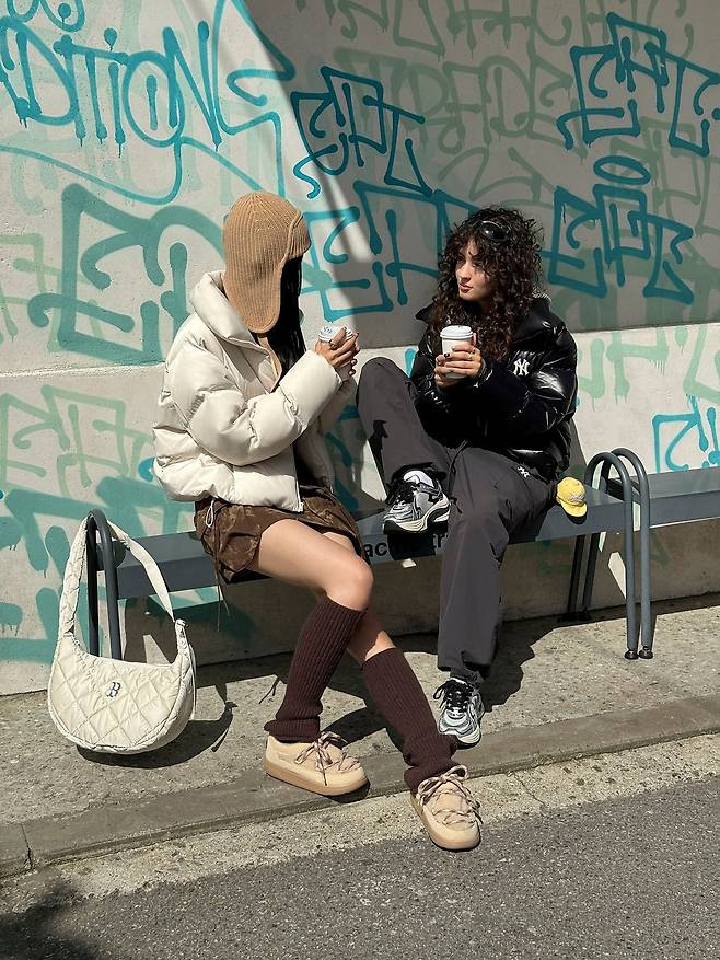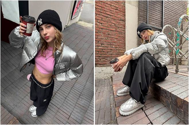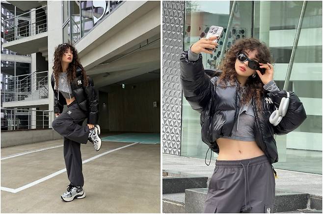 힙한 매력이 가득한 패딩룩을 선보인
