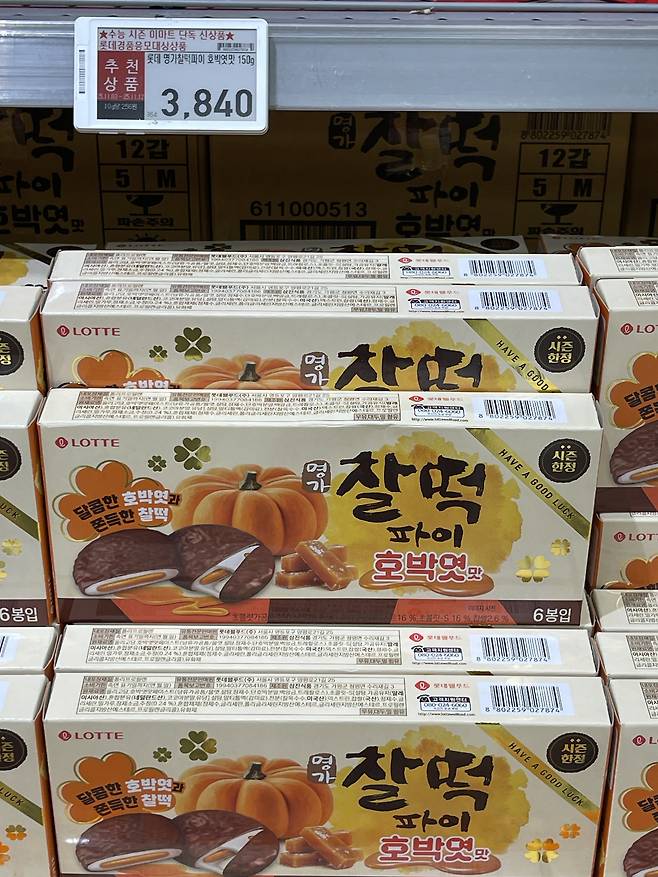 명가 찰떡파이 호박엿은 부드러운 초콜릿 코팅 안에 쫀득한 찰떡과 달콤한 호박엿 필링이 들어있는 프리미엄 간식이에요.