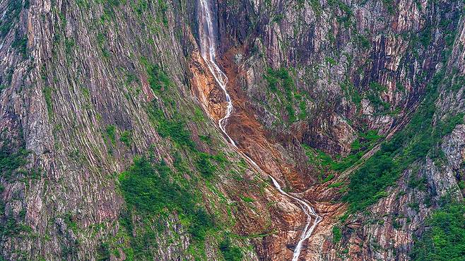이 폭포는 단순히 길이만 긴 것이 아니라, 각 구간마다 서로 다른 흐름과 분위기를 만들어낸다. 수직 절벽을 따라 떨어지는 물줄기는 웅장함과 섬세함을 동시에 보여준다.