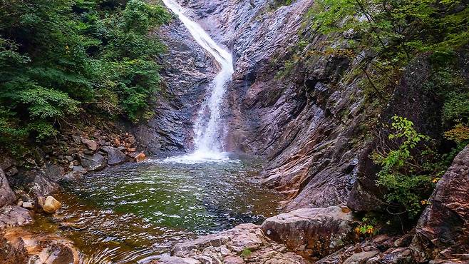자연이 만든 조형물처럼 보이는 풍경은 잠시 발걸음을 멈추게 만든다.이어 등장하는 비룡폭포는 이름처럼 용이 솟구치는 형상을 닮았다.