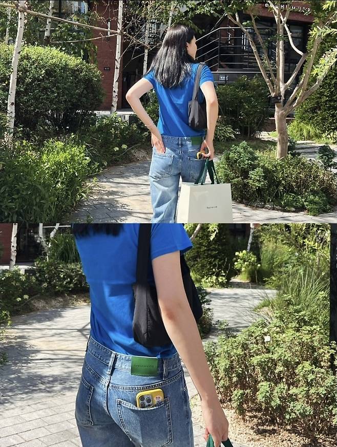 또한 아이보리 쇼핑백과 블랙 숄더팩을 번갈아 매치하며 꾸안꾸 트렌디함을 살리는 패션 센스를 통해 건강미 넘치는 일상룩을 완성했습니다.