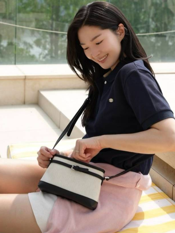 여기에 블랙 앤 화이트 컬러의 스니커즈와 크로스백을 매치해 스포티한 무드를 완성, 실용성과 스타일을 모두 갖춘 여름룩을 완성했습니다.