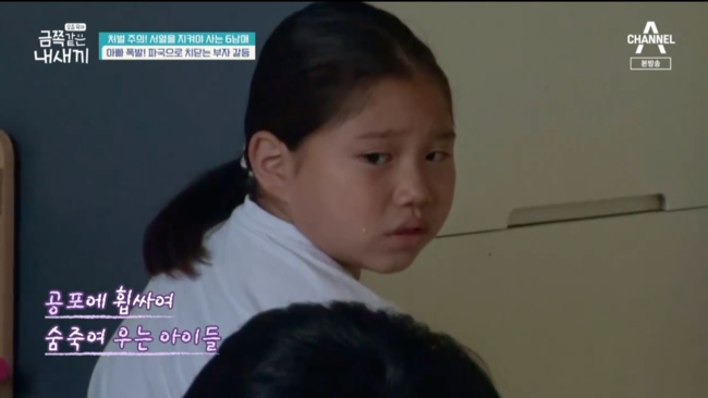 아빠는 “나가. 나가서 들어오지마. 나가 이 XXX야”라며 옷을 집어던졌다. 손찌검을 하려는 아빠를 둘째와 엄마가 말렸다. 다른 방에 있던 아이들은 공포에 질려 숨죽여 눈물을 흘려 보는 이들을 안타깝게 만들었다.