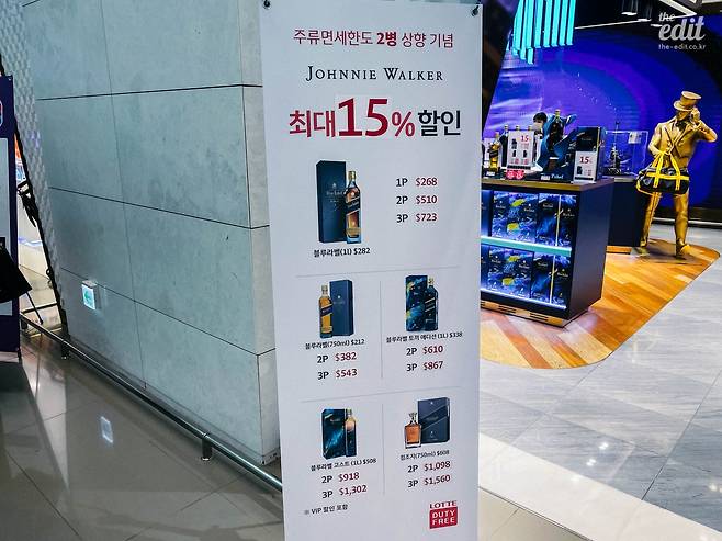 주세가 비싼 편인 우리나라에서는 일반 소매가와 면세가는 꽤 큰 차이가 난다. 특히 주세는 가격에 세금을 매기는 종가세여서 원가가 비쌀수록 세금도 비싸진다. 이런 이유로 백화점에서 100만 원이 넘는 고가 위스키가 면세가로는 절반도 되지 않는다. 또, 여러 병을 구입하면 할인이 되는 등 면세점의 다양한 할인 행사를 이용하면 더욱 저렴한 가격에 구매 가능하다.
