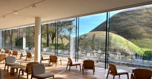 특히 미술관 내부에서 통유리창을 통해 고분의 풍경을 감상할 수 있어 한국의 아름다움을 만끽할 수 있는 공간이죠.